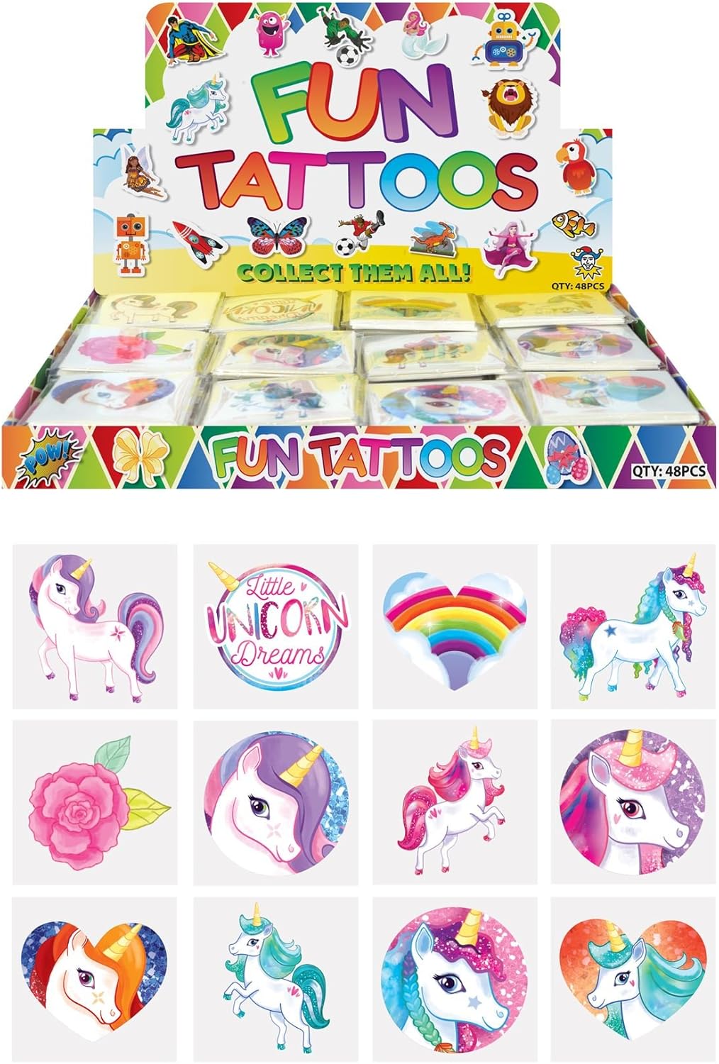 Concept4u 48 X 12 Mini Tattoos Unicorn Design Party Bag Filler Mini Tattoo Design Image Source @ www.amazon.co.uk